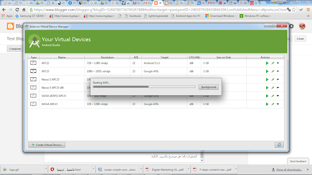 الخطوة التالية هي اضافة Emulator من خلال الضغط على اداة AVD Manager الموجوده على شريط ادوات واجهة المستخدم
